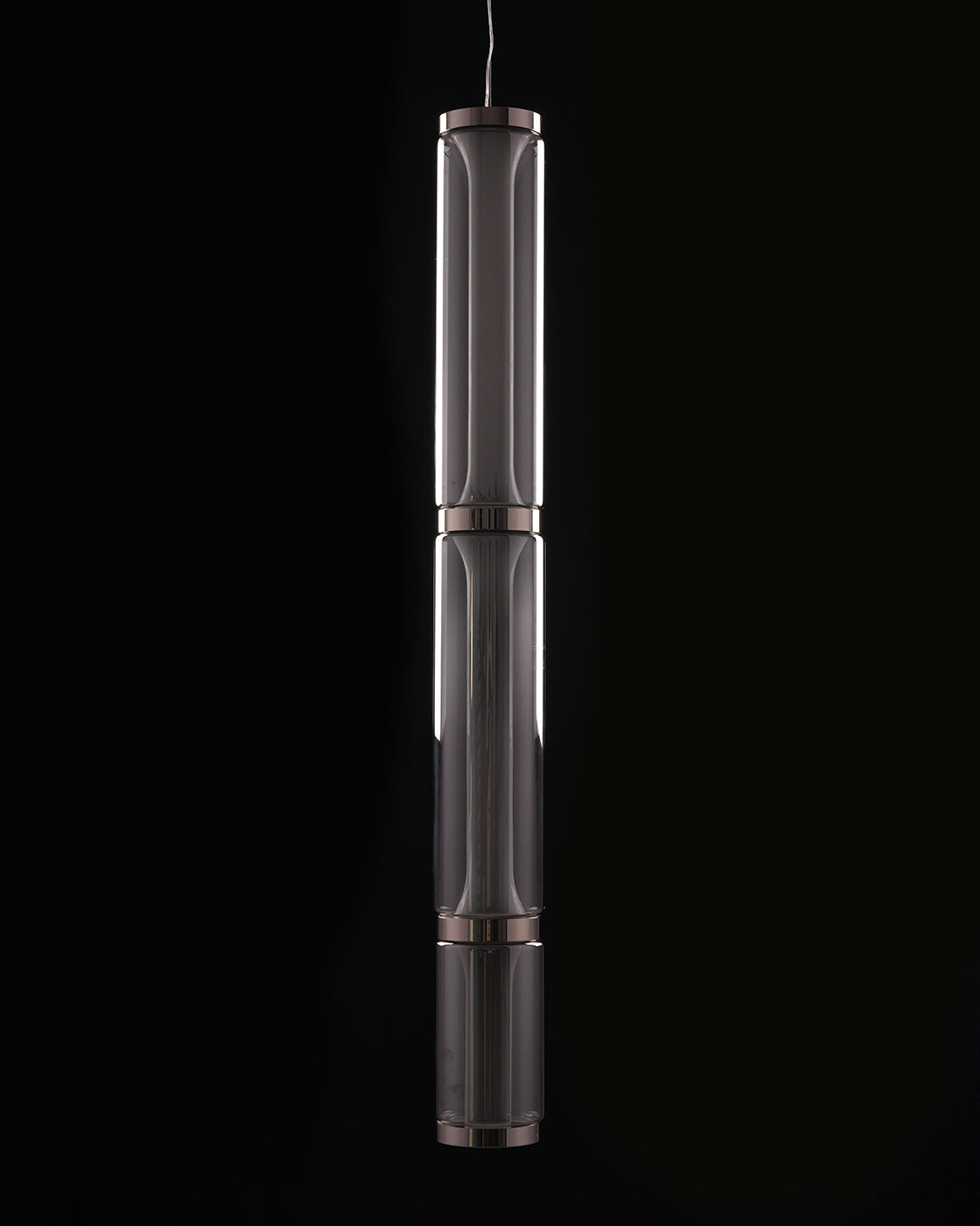 Lumen Arc Mini – Chrome & Glass Vertical LED Pendant