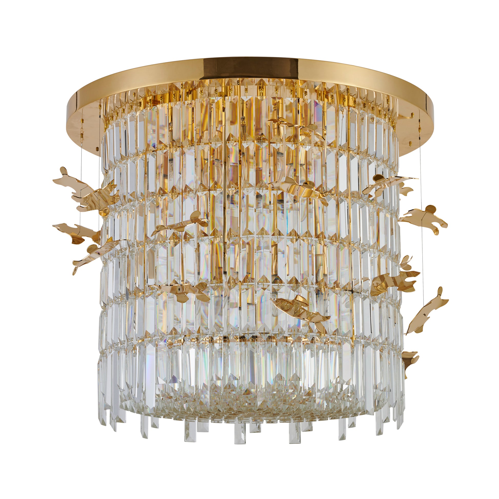 Regalia Mini brings the luxury of grand chandeliers into smaller spaces. With a compact circular frame in gold and refined crystal diffusers, it delivers elegance and soft ambient lighting perfect for intimate rooms.